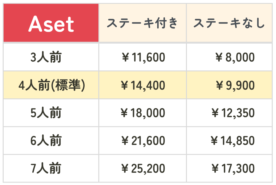 4人前 ステーキ付き ¥14,400(税込)