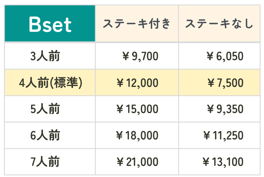 4人前 ステーキ付き ¥12,000(税込)