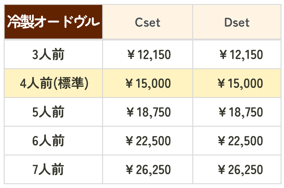 冷製オードヴル料金表