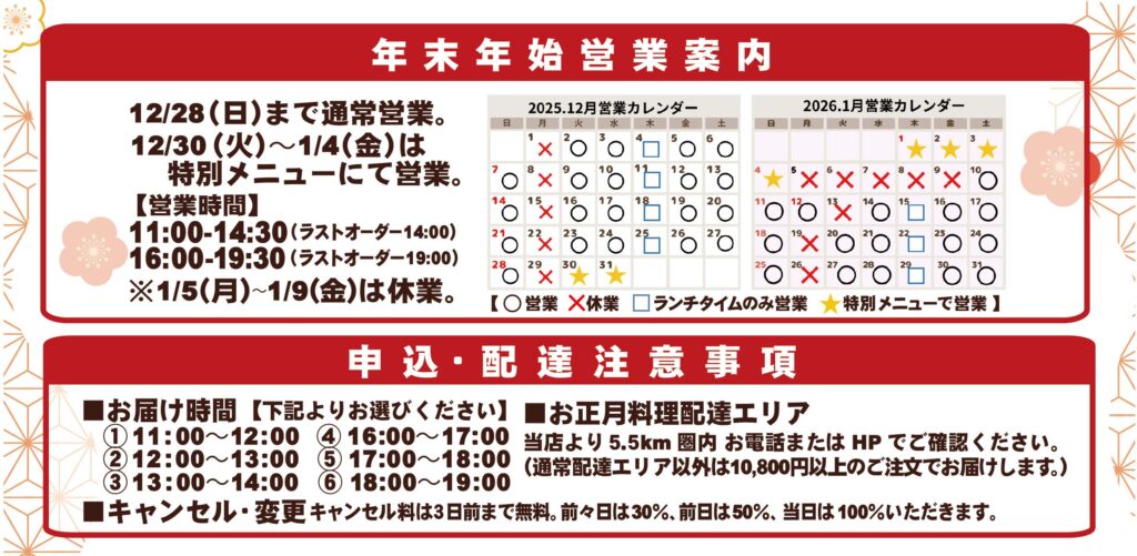 年末&お正月特別メニュー