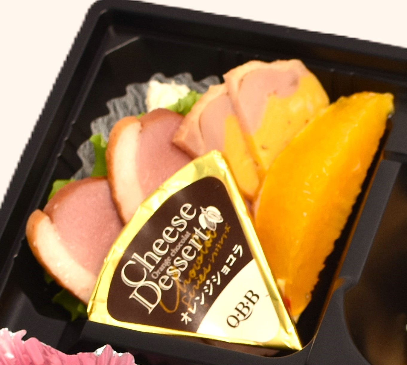 大エビフライ・チキン唐揚げ・サバ生姜煮・だし巻き卵・鴨スモーク・カボチャとチーズのテリーヌ・オードヴルチーズ・オレンジ・ポテトサラダ・惣菜2品・ライス・漬物