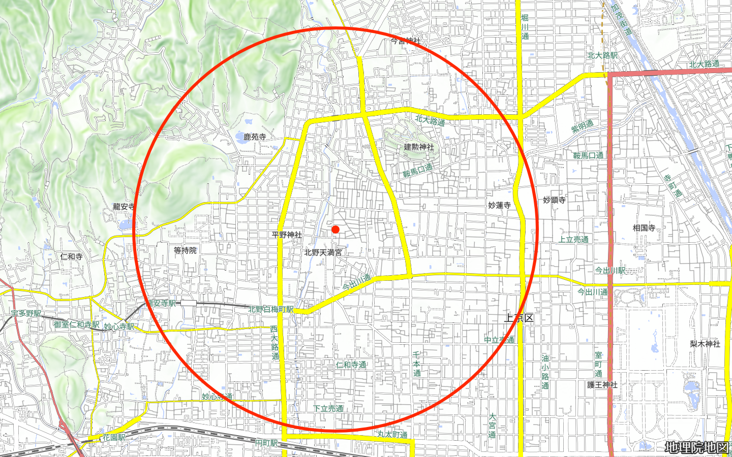通常配達地域(大体のエリア):当店から1.5km範囲の京都市上京区、京都市北区、京都市中京区、京都市右京区